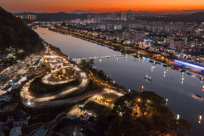 | ▲ 진주시 10월 축제인 ‘유등축제’ 야간 전경(진주시 제공) |
