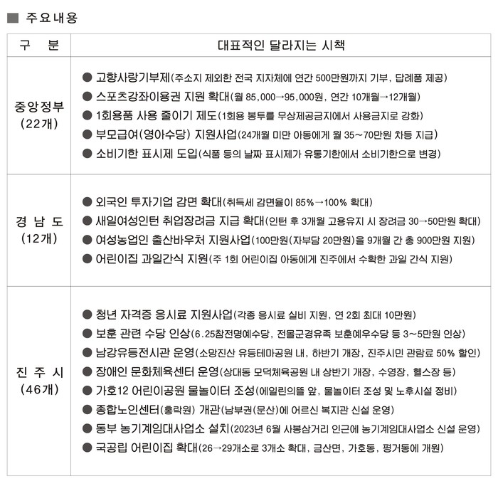 [프레스뉴스] 정재훈 기자= 진주시는 시민 생활에 유용한 ‘2023년 새해부터 달라지는 시책’을 발표했다.