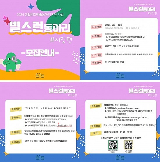 | ▲2024 생활문화예술동아리 지원 사업 ‘별스런동아리-시장편’모집 안내 포스터(사진제공=담양군) |