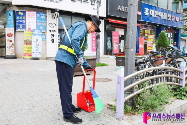 - 7일 아침 단원구 선부동 동명아파트 삼거리서 환경미화원들과 거리 청소 나서