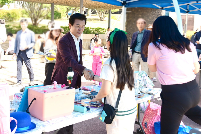 | ▲ ‘모모장터’를 찾은 조규일 시장(사진=진주시) |