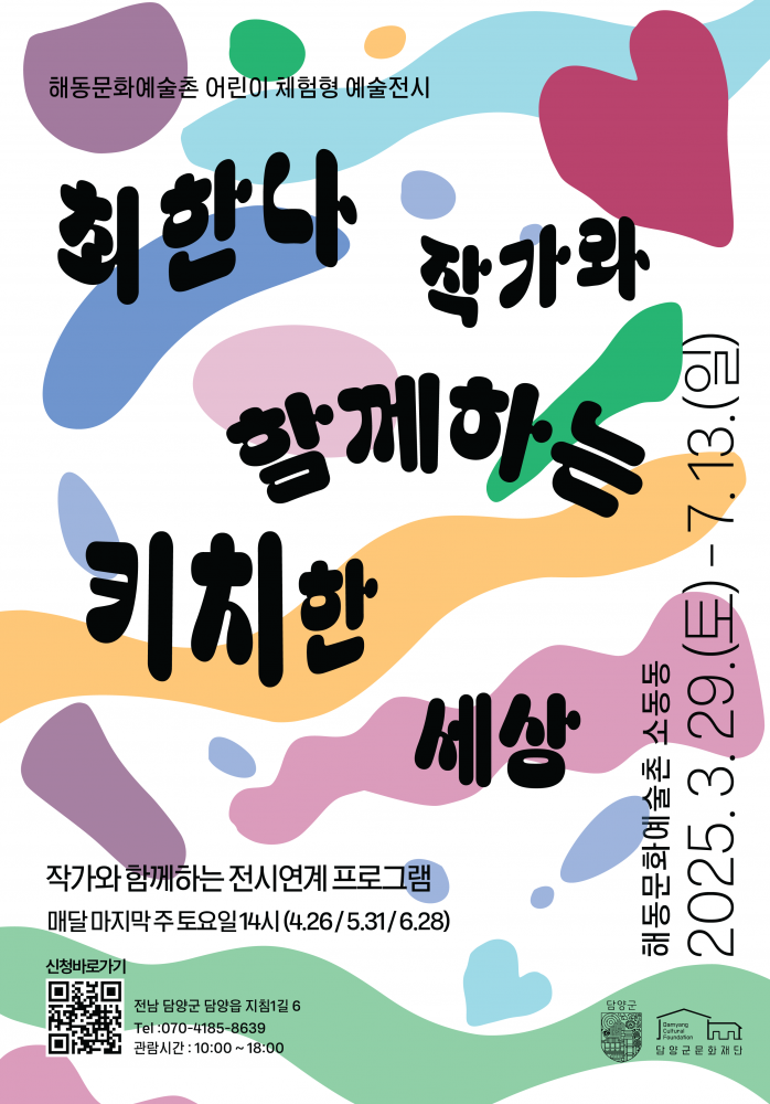 어린이 체험형 예술전시 ‘최한나 작가와 함께하는 키치한 세상’ 전시 또한 같은날 개막해 7월 13일까지 해동문화예술촌 소동동에서 진행된다.
