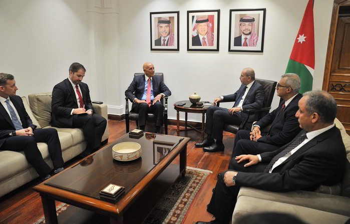 | ▲ 톰 배럭(왼쪽 세번째) 시리아 특사단과 아이만 사파디 요르단 외무장관이 시리아 현안에 관해 논의하고 있다. |