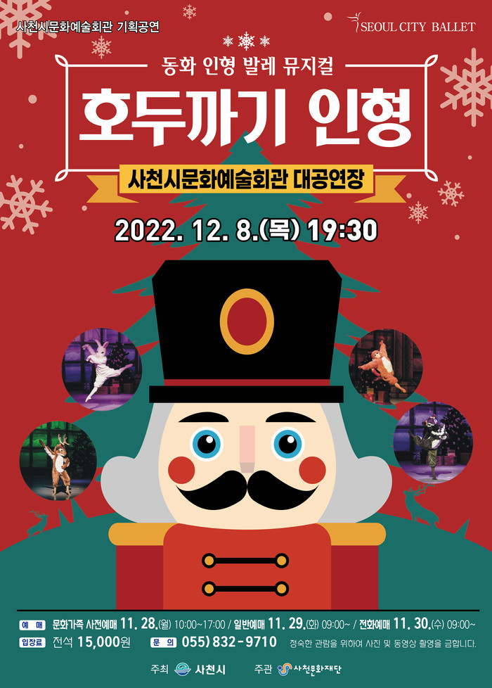 사천문화재단 기획공연 <호두까기 인형>은 사천문화재단 홈페이지를 통해 예매할 수 있다. 공연 관련 자세한 내용은 사천문화재단 공연기획팀으로 문의하면 된다.