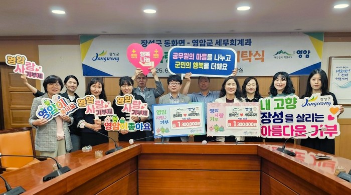 ▲장성군 동화면과 영암군 세무회계과가 지난 10일 상호 고향사랑기부에 동참했다.(사진제공=장성군) |