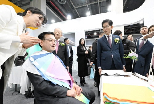 ▲최상목 대통령 권한대행 부총리 겸 기획재정부 장관이 19일 서울 서초구 aT센터 전시장에서 열린 '2025 대한민국 채용박람회'에 참석해 구직자를 위해 마련된 퍼스널컬러 시연을 하고 있다. (사진= 뉴스1) |
