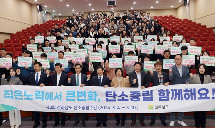 [전남=프레스뉴스] 강래성 기자= 전라남도가 2050 탄소중립 비전 선포 3주년을 기념해 오는 10일까지 1주일간을 탄소중립 주간으로 정하고, 탄소중립 실현을 위한 다양한 행사를 펼친다고 밝혔다.