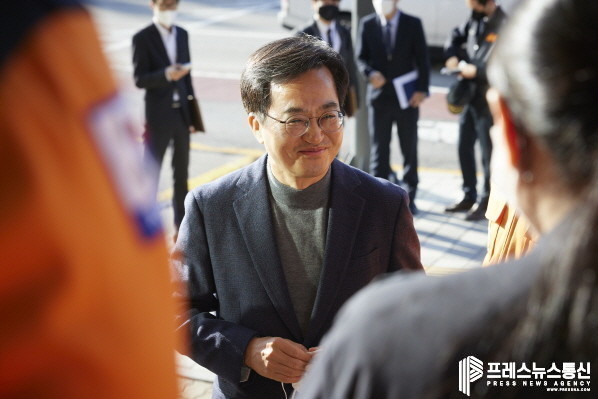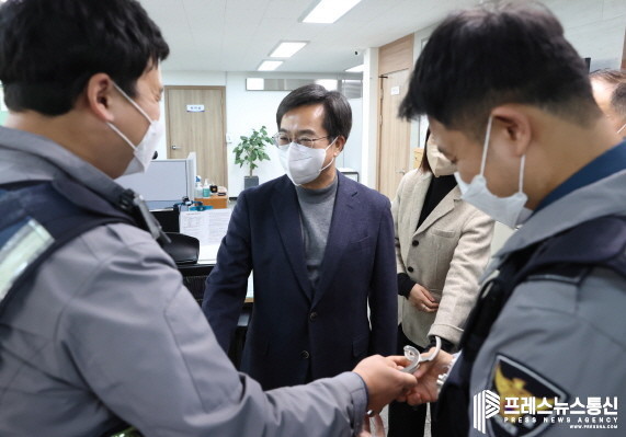 [프레스뉴스] 장현준 기자= 김동연 경기도지사가 도내 지구대와 소방서, 도시안전통합센터를 잇달아 방문해 소방관과 경찰관 등 제복을 입고 국민에게 헌신·봉사하는 분들에 대한 국민들의 신뢰가 높다며 사기를 잃지 말아야 한다고 격려했다.