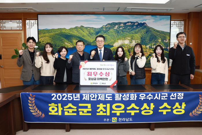 | ▲2025년 제안제도 활성화 평가 최우수상 기념사진(사진제공=화순군) |