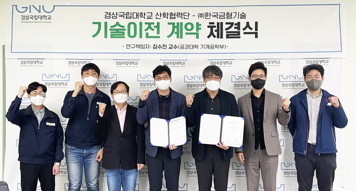 | ▲ 경상국립대학교 산학협력단-㈜한국금형기술, 기술이전 계약 체결식(사진=경상국립대) |
