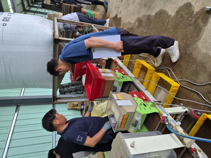 현장에서는 마른 종자 기준으로 모판 1개당 약 200g의 파종이 적정하다는 설명과 함께, 벼알이 제대로 여물지 않거나 수발아가 발생한 볍씨는 발아율이 떨어질 수 있어 약 10%를 늘린 220g 정도로 파종할 것을 권장했다. 바닥 육묘 기간은 8~12일이 적당하며, 하우스 등 시설에서는 통풍 관리를 통해 온도를 25도 이하로 유지하고, 하루 1~2회 관수를 실시하는 것이 중요하다는 점도 강조했다.