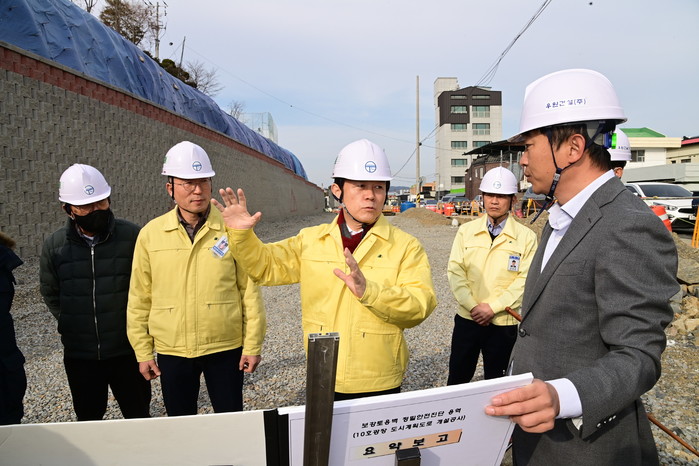 [프레스뉴스] 정재훈 기자= 조규일 진주시장은 22일 10호광장 동편~여중오거리 간 도시계획도로 개설공사 구간 중 지난해 11월 붕괴된 삼일교회 주변 공사현장을 점검했다.