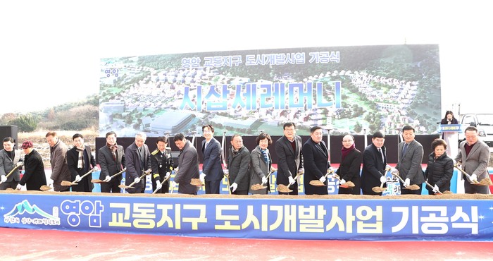 영암군(군수 우승희)이 26일 영암읍 교동리에서 ‘영암 교동지구 도시개발사업 기공식’을 열었다. 이날 기공식에는 민선 8기 영암군의 첫 도시개발에 대한 관심을 반영하듯, 전남도의원, 영암군의회의원과 영암읍 이장단 등 영암군 안팎에서 다양한 인사 등 200여 명이 함께 했다.