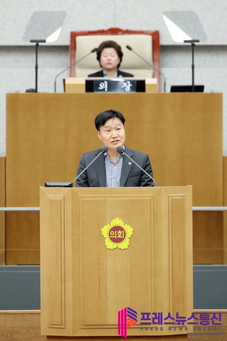 ▲ 경기도의회 김태희 의원이 16일 “경기 아동그룹홈 지원센터와 청소년 문화공간” 설치 필요성을 강조하며 도정질문을 하고 있다.(사진=경기도의회) |