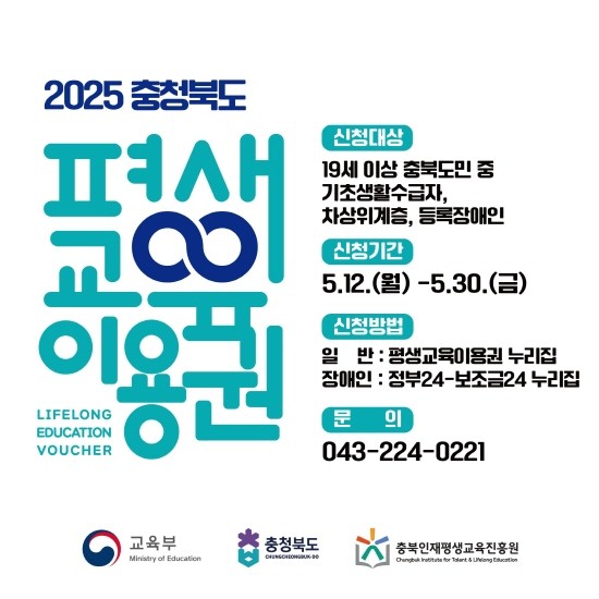 | ▲충북 평생교육이용권 신청 안내 포스터(사진=옥천군) |