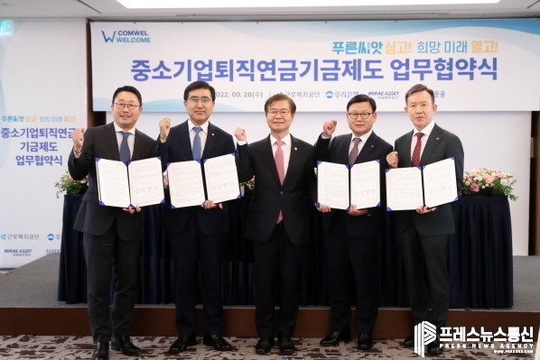 [프레스뉴스] 김대일 기자= 우리은행(은행장 이원덕)은 근로복지공단과 ‘중소기업퇴직연금기금제도’ 주거래은행 업무 협약을 체결했다고 28일 밝혔다.