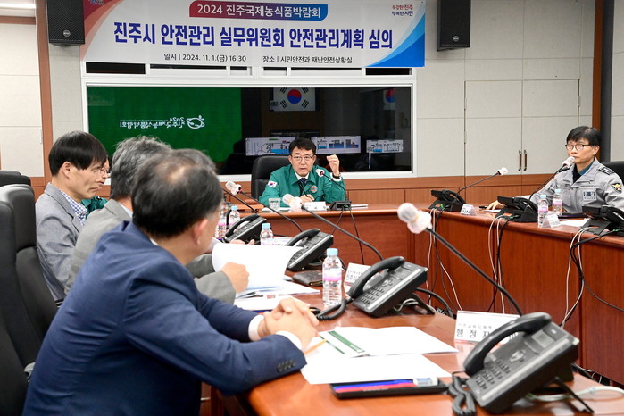 | ▲진주시는 1일 시청 재난안전상황실에서 6일부터 열리는 ‘2024 진주국제농식품박람회’를 앞두고 행사 안전관리계획 적정성 심의를 위한 안전관리 실무위원회를 개최했다 (사진=진주시) |