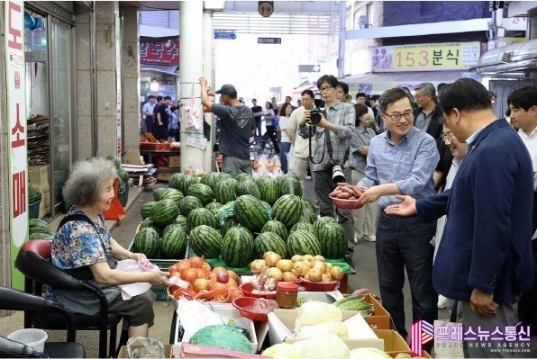 김 지사는 개막식 후 시장을 돌며 현장의 목소리에 귀를 기울였다. 배우자와 함께 온누리상품권과 현금으로 과일과 채소 등 15만 원가량 장을 본 김 지사는 통큰세일 혜택으로 온누리상품권 2만 원을 환급받았고 이 상품권으로 인근 가게에서 수박 한 통을 구매하고 현장을 떠났다.