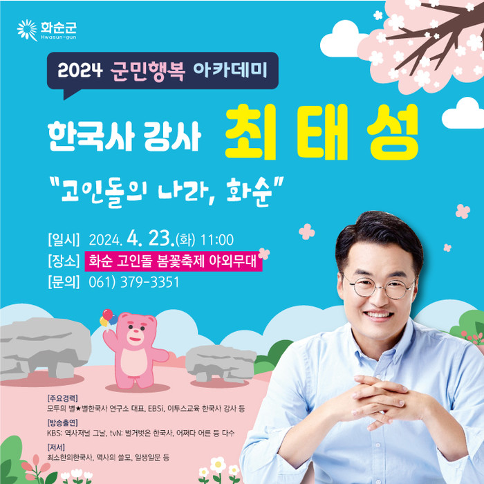 이번 아카데미 2회차 강연은 화순 고인돌 봄꽃 축제 기간에 맞춰 특별히 축제장으로 강연 장소를 옮겨 야외에서 진행하며, 강연 시작도 오전 11시로 조정되었다.