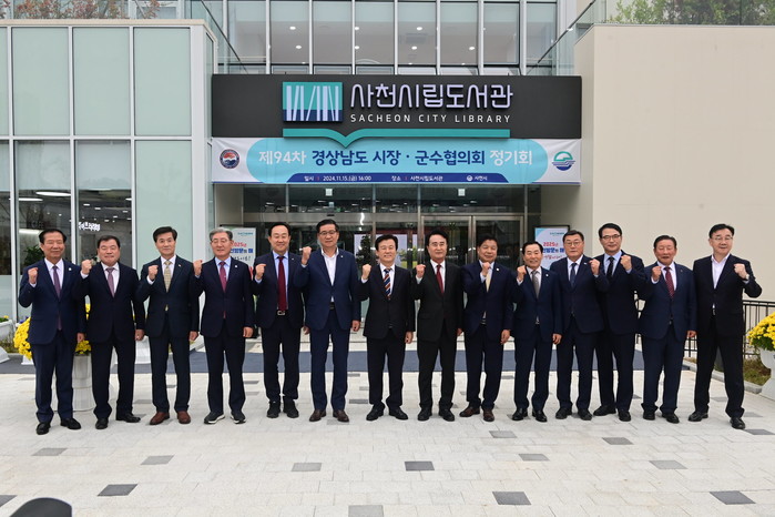 | ▲경상남도 시장·군수협의회는 15일 사천시립도서관에서 경남도내 시장·군수 14명이 참석한 가운데 제94차 정기회의를 개최했다. (사진=진주시) |