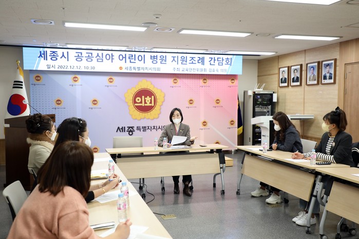 ▲세종시의회 김효숙 의원이 12일 세종시 공공 심야 어린이병원 지원 조례 발의를 준비하기 위해 지역 학부모 및 의료기관 관계자 등을 만나 의견을 수렴해왔다고 밝혔다.(사진=세종시의회) |