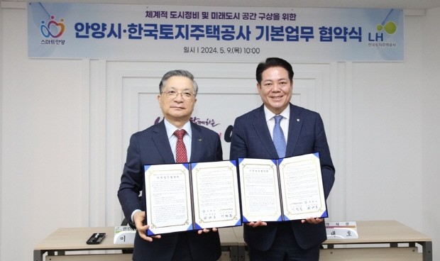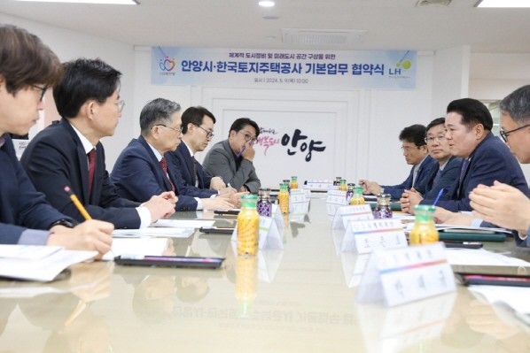 | ▲안양시와 LH와 9일 오전 10시 시청 3층 접견실에서 '체계적 도시정비 및 미래도시 공간 구상을 위한 업무협약식'을 열었다.(사진=안양시) |