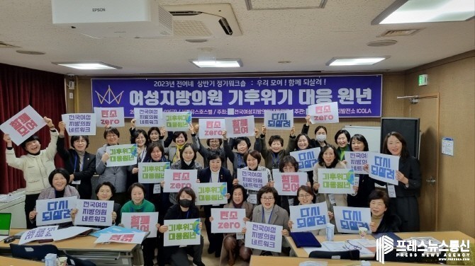 [프레스뉴스] 김대일 기자= 전국여성지방의원네트워크(이하 전여네)는 지난 2월2~3일 서울유스호트텔에서 ‘우리 모여! 다시 되살려!’라는 슬로건으로 정기워크숍을 개최하고 ‘전국여성지방의원 기후위기 대응 원년 선포식’을 가졌다.