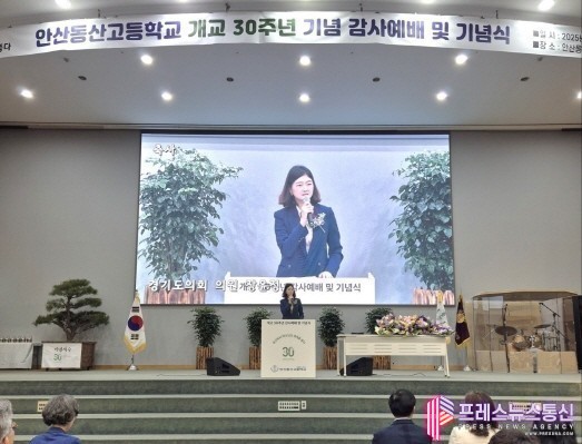 [프레스뉴스] 류현주 기자= 경기도의회 장윤정 의원(더불어민주당, 안산3)은 5월 15일 안산동산고등학교 개교 30주년 기념식에 참석해 축하의 인사를 전하며, 학교의 성장과 발전에 기여한 모든 이들의 헌신에 깊은 경의를 표했다.