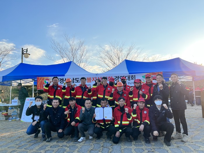 | ▲ 산청군 경남산불지상진화 경연대회 최우수상 수상 기념사진 |