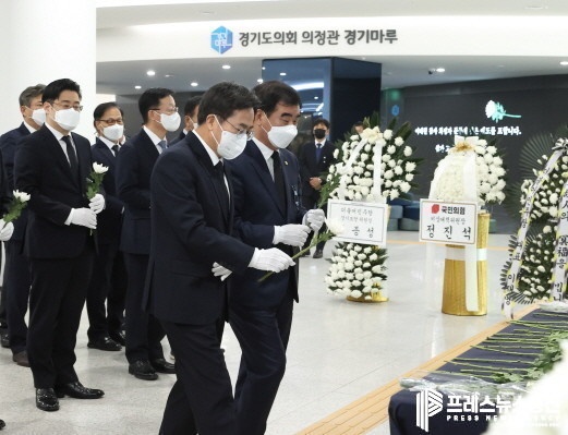 김 지사는 수원 경기도청사와 의정부 북부청사에 마련된 합동분향소가 이날 오후 10시까지 운영됨에 따라 염종현 경기도의회 의장과 오병권 경기도 행정1부지사, 염태영 경제부지사, 실‧국장 등 도청 간부들이 함께한 가운데 합동 조문을 했다.