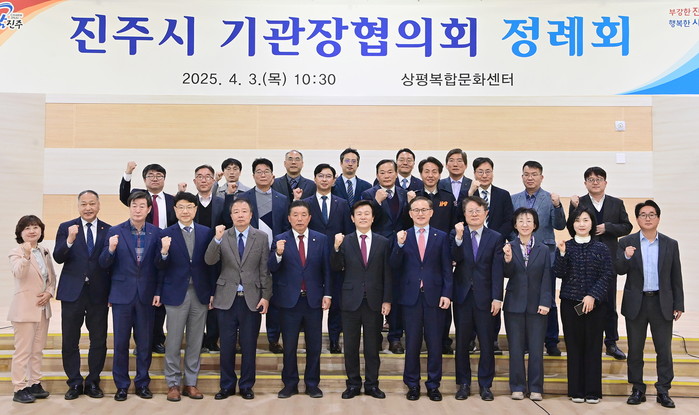 ▲진주시기관장협의회는 3일 상평복합문화센터에서 ‘2025 제1차 진주시기관장협의회 정례회’를 개최하고 지역 현안을 공유하며 유기적인 협조체계를 구축했다. (사진=진주시) |