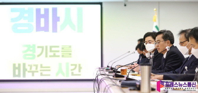 | ▲15일 오후 경기도청 4층 다목적회의실에서 김동연 경기도지사와 실국장, 과장 등이 참석한 가운데 기회경기 혁신포럼 ‘경바시(경기도를 바꾸는 시간)’이 열리고 있다.(사진=경기도) |