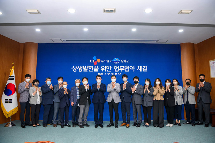 | ▲남해군과 CJ 푸드빌 상생발전을 위한 업무협약 체결(남해군 제공) |