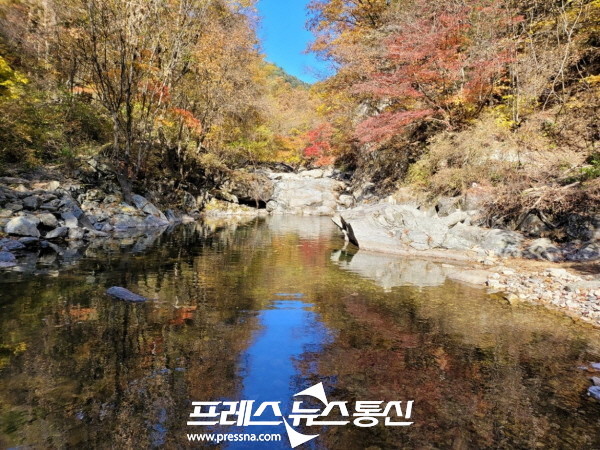 경기도는 연인산도립공원 용추계곡 상류 지역 천혜의 아름다운을 경관과 가을 단풍이 아름답기로 손꼽는 ‘연인산 명품길’을 29일 추천했다.
