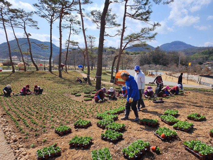 | ▲화순군 고인돌 문화공원 봄꽃 식재(사진제공=화순군) |