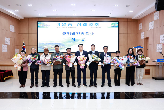 | ▲3월 정례 조회 실시-군정 발전 유공자 시상 (사진제공=화순군) |