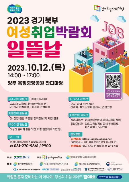 [프레스뉴스] 김대일 기자= 경기도와 경기도일자리재단은 12일 오후 2시 양주시 옥정중앙공원 잔디마당에서 경기북부 구직여성을 위한 여성취업박람회 ‘일뜰날’ 행사를 연다.