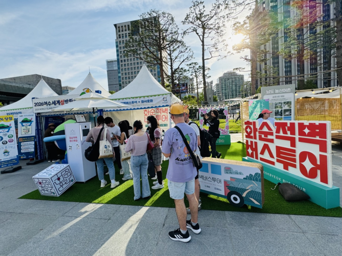 재단이 참여한 “농산어촌존” 주제관 내 화순군문화관광재단 홍보부스는 컬러풀하고 생동감 있는 플레이존과 포토존을 운영하여 다양한 연령층이 즐길 수 있도록 꾸며졌으며, SNS 포토 이벤트를 통해 “화사로와” 웰컴키트와 “화순적벽버스투어” 기념 우산을 배포하여 큰 관심을 끌었다.