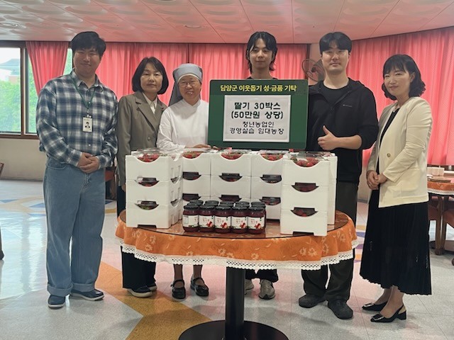 [전남=프레스뉴스] 박정철 기자=담양군은 청년농업인 경영실습임대농장 임차인인 양진석 씨가 지난 22일 노인주거복지시설 ‘예수마음의 집’에 자가 재배한 딸기 30박스(약 50만 원 상당)를 기부했다고 밝혔다.