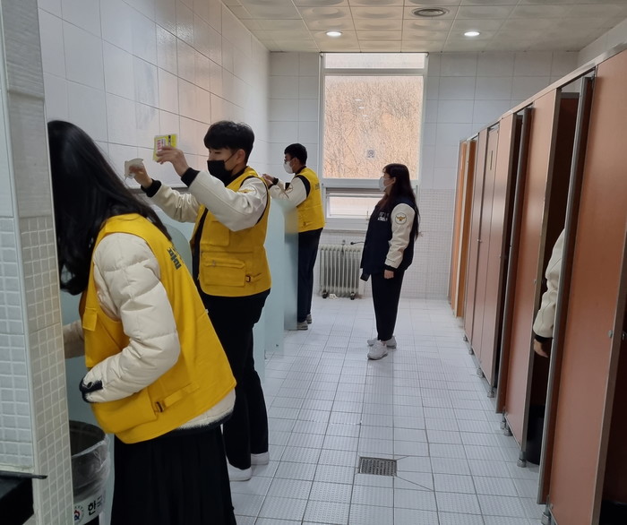 시가 지난 23일 한국영상대학교를 찾아 세종경찰청, 한국영상대 학생들과 점검단을 구성하고 학생들이 안심하고 화장실을 이용할 수 있도록 불법촬영 합동점검을 실시했다.