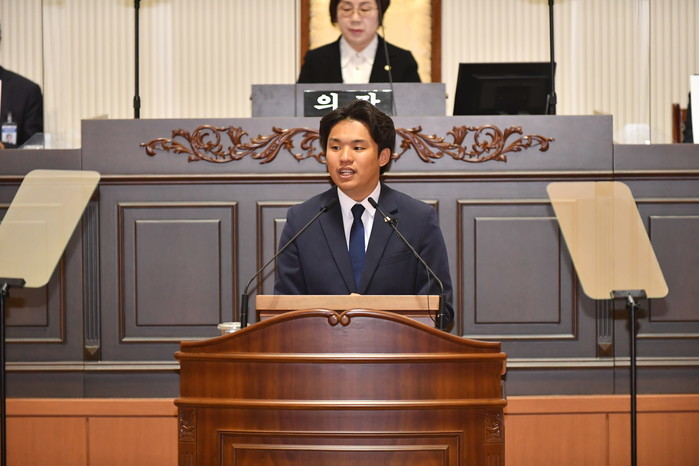 | ▲ 진주시의회 최지원의원 5분 자유발언 모습(사진=진주시의회) |
