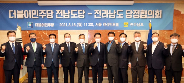 당정협의회는 김영록 도지사와 김승남 전남도당 위원장을 비롯한 지역 국회의원 10명이 참석한 가운데 전남도의 주요 현안을 지역 국회의원에게 설명하고 국회 차원의 협조와 지원을 요청하는 자리로 진행됐다.
