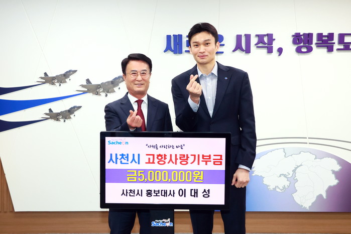 경남 사천 선구동 출신인 이대성 선수는 24일 오전 9시 사천시청을 직접 방문해 박동식 시장에게 고향사랑기부금 최고액인 500만 원을 기탁했다.