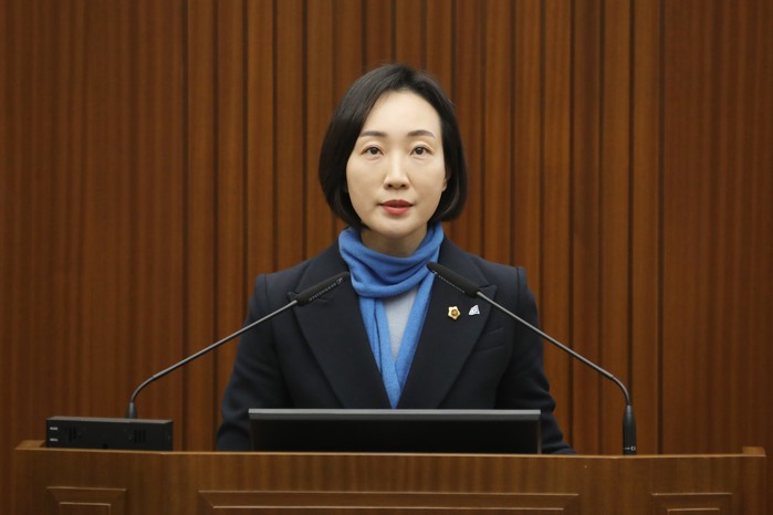 ▲세종시의회 김효숙 의원(나성동, 더불어민주당)이 30일 제80회 임시회 1차 본회의에서 5분 발언을 하고 있다(사진=세종시의회) |
