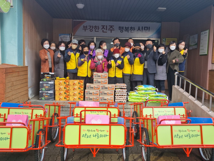 ▲ 진주시자원봉사센터가 폐자원 수집 노인과 장애인의 자활을 지원하기 위한‘안전 나르미카’전달식을 가졌다. (사진=진주시) |