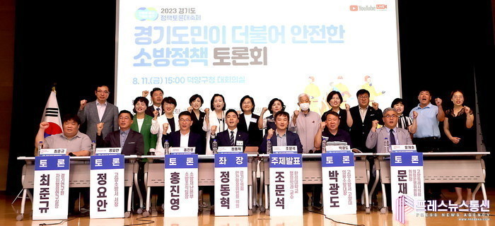 [프레스뉴스] 김대일 기자= 경기도의회 안전행정위원회 소속 정동혁 의원(더불어민주당, 고양3)이 좌장을 맡은 「경기도민이 더불어 안전한 소방정책 토론회(고양.관산 119지역대 안전센터 승격 관련)」가 지난 8월 11일(금) 덕양구청 대회의실에서 열렸다. 본 토론회는 경기도와 경기도의회가 공동으로 주최하는 ‘2023 경기도-경기도의회 정책토론 대축제’의 일환으로 개최되었다.
