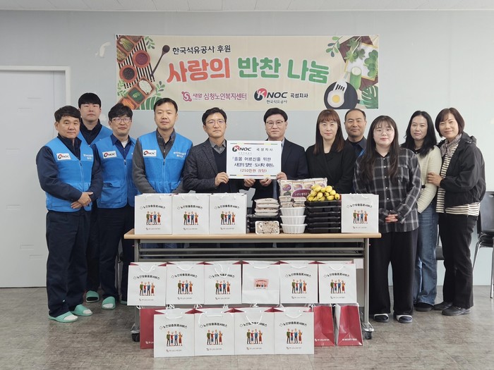 한국석유공사 송영섭 곡성지사장은 “우리 지역 어르신들께 조금이나마 도움을 드릴 수 있어서 기쁘고 앞으로도 꾸준히 지역사회를 위해 봉사와 나눔을 실천하겠다”라고 전했다.