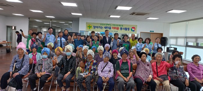 또한 이날 봉사현장에는 남해군보건소에서 어르신들을 위해 치매인식개선, 혈압체크 및 암검진 홍보 캠페인을 전개했으며 홍보 물품도 배부했다. 뿐만 아니라 경상남도 새마을회에서도 휴대용 손마사지기 50개를 어르신들을 위해 후원했다.