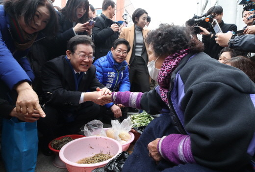 | ▲이재명 더불어민주당 대표가 11일 충남 홍성군 홍성시장을 방문해 시민들에게 인사를 하고 있다.(사진= 뉴스1) |