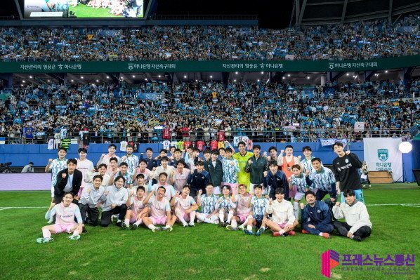 [프레스뉴스] 류현주 기자= 하나은행(은행장 이승열)은 하나금융그룹의 광고모델인 임영웅과 함께 사회취약계층 지원을 위해 개최한 『하나은행 자선축구대회(Hana Bank Charity Match)』가 3만 5천여명의 구름관중을 동원하며 성공적으로 마쳤다고 밝혔다.